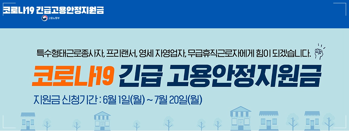 정부가 발표한 코로나19 긴급고용안전지원금은 고용보험의 사각지대에 놓인 특수 고용 노동자, 프리랜서, 영세 자영업자, 노동자, 무급 휴직자를 위해 6월 1일부터 신청을 받고 있습니다. 긴급 고용안전지원금은 5월부터 지급된 긴급재난지원금과 중복 수령이 가능하니 아래 내용을 보시고 고용노동부 코로나19 긴급 고용안정지원금을 통해 바로 신청하시기 바랍니다.