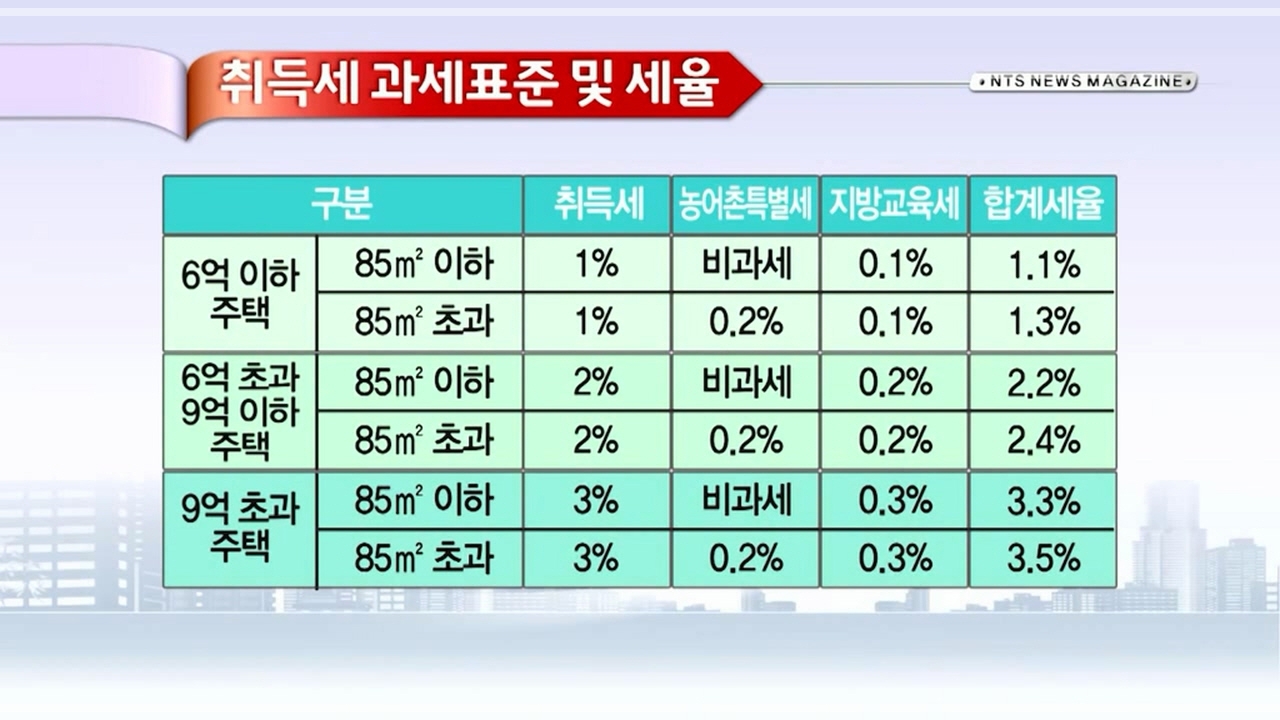 일시적으로 감면제도가 생기면서 감면받을 수 있었는데요. 저를 예로 들자면 생에 최초 주택을 매매받아 매매가액으로 세율을 적용해야 하지만 2019년에 도입된 부동산 제도 법에 따르면 생애 최초 주택을 구매한 신혼부부들에게 해당되는 세금 감면 제도를 적용받아 현재까지 제가 마련한 남편과 함께 집에 잘 살고 있는데요. 한시적으로 시행을 했었던 제도였었는데 새 신혼집을 알아보고 있었는데 일시적으로 시행을 한 제도 덕분에 생애 최초 제집 마련에 있어 세금을 감면받았었습니다. 2020년 올해 역시 개정된 사항들도 몇 가지 있는데요. 주택 매매의 경우 취득가액이 실제 가격보다 낮게 신고를 하게 되면 납부의 의무를 피해 가는 사람들의 악용사례를 막기 위해서 6억 원부터 9억 원 주택에 대해 비례세가 적용된다고 합니다. 그렇기 때문에 각 구간당 취득세율의 과제 표준액이 100만 원 오를 때마다 세율도 같이 올라간다고 보시면 됩니다.