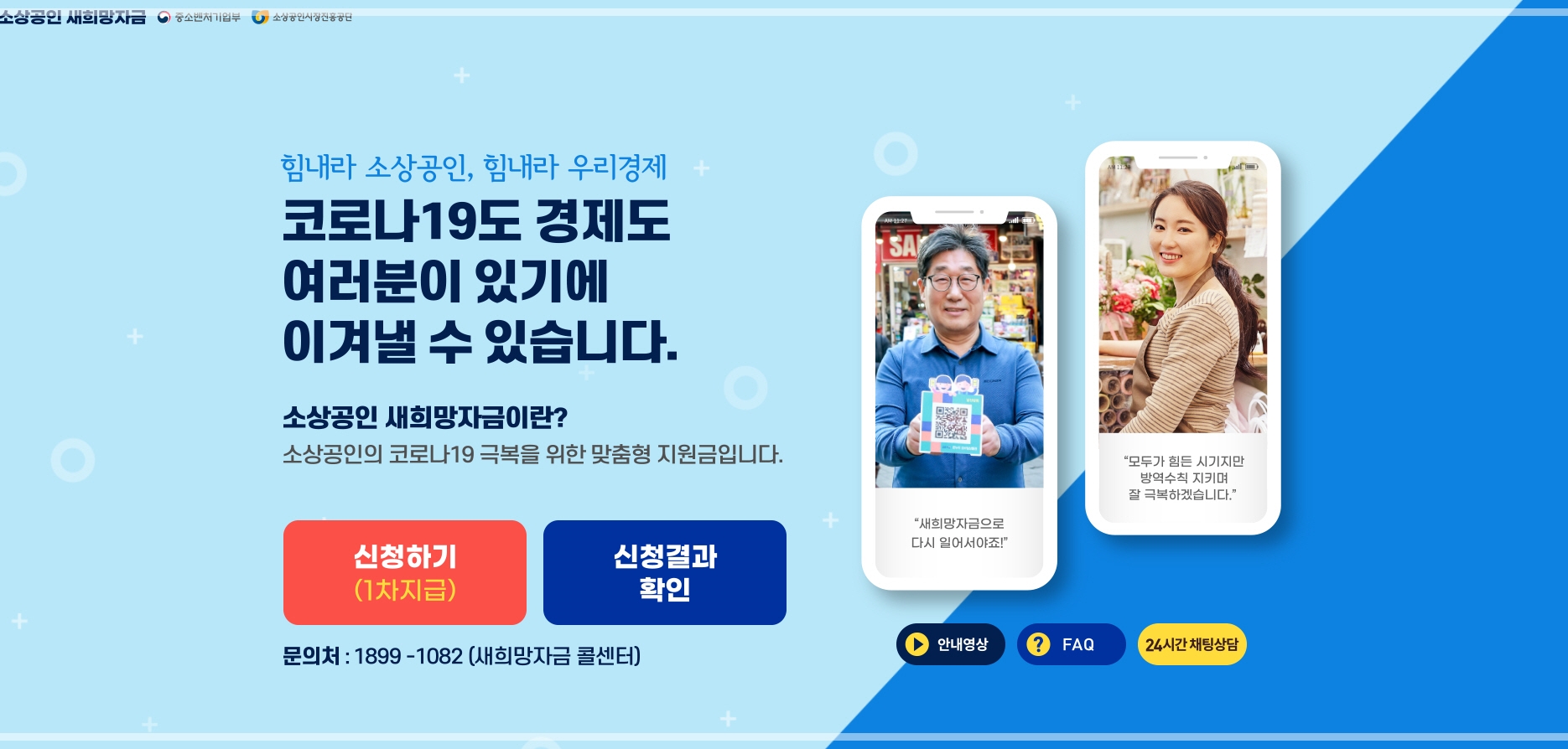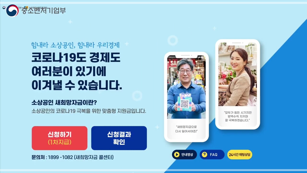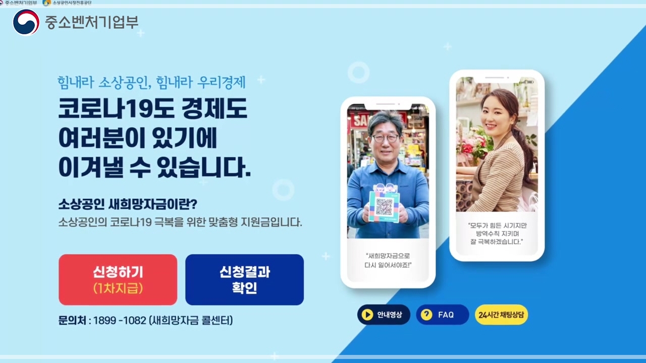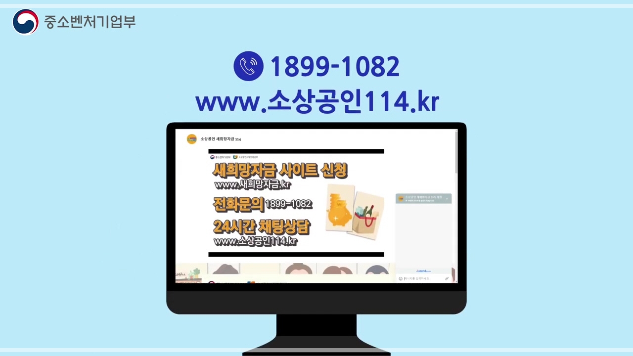 소상공인 새희망자금 신청에 대한 안내는 1899-1082와 사이트 www.소상공인114.kr에 24시간 채팅 상담을 통해 문의할 수 있습니다.