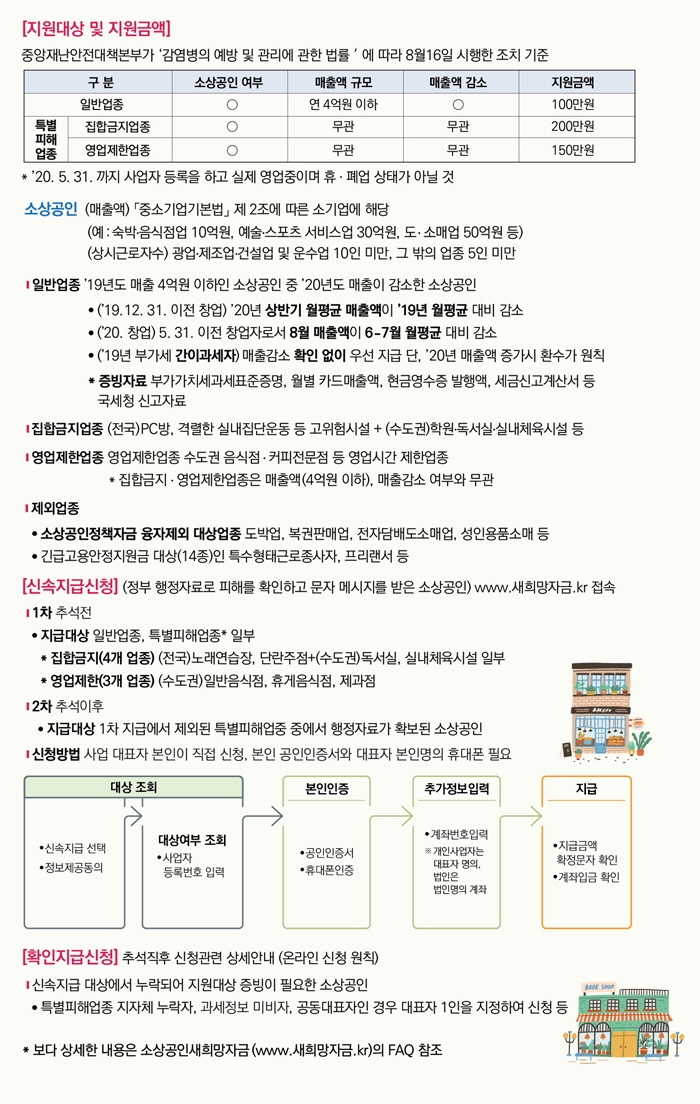 선지급 후 추후 자료 증빙하여 부적합할 시 다시 회수하는 방법으로 진행하고 있더라고요. 2019년 이전 오픈하신 분들은 2019년 총매출을 12로 나눈 평균 매출보다 2020년 상반기 매출 2020년 1월~6월의 평균 매출이 줄었을 경우 받을 수 있습니다.