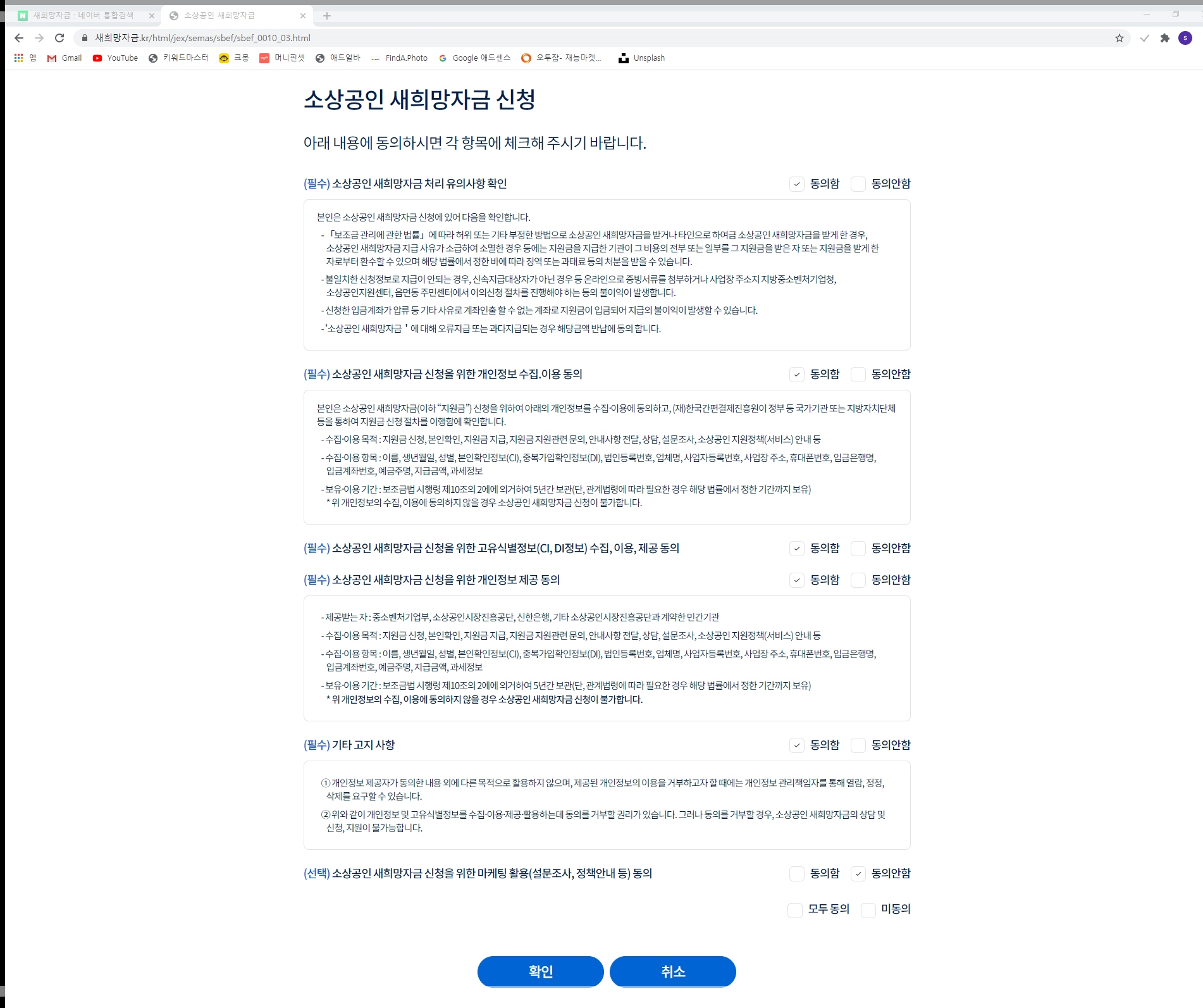 유의사항을 꼼꼼하게 읽어 보시고 개인정도 동의 내용을 확인 후 동의를 선택하세요.