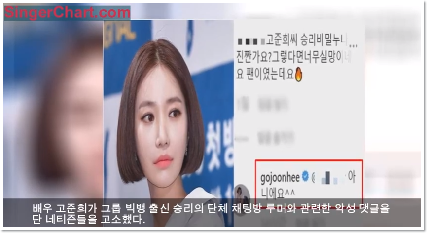 버닝썬 사태의 승리 탄체 카카오톡의 대화방이 공개되면서 뉴욕의 승리 비밀 누나에 대한 언급이 알려지면서 당시 뉴욕에 있던 여배우들 중 고준희를 그 여배우로 의심을 하며 악플들이 생겨나기 시작했다.
